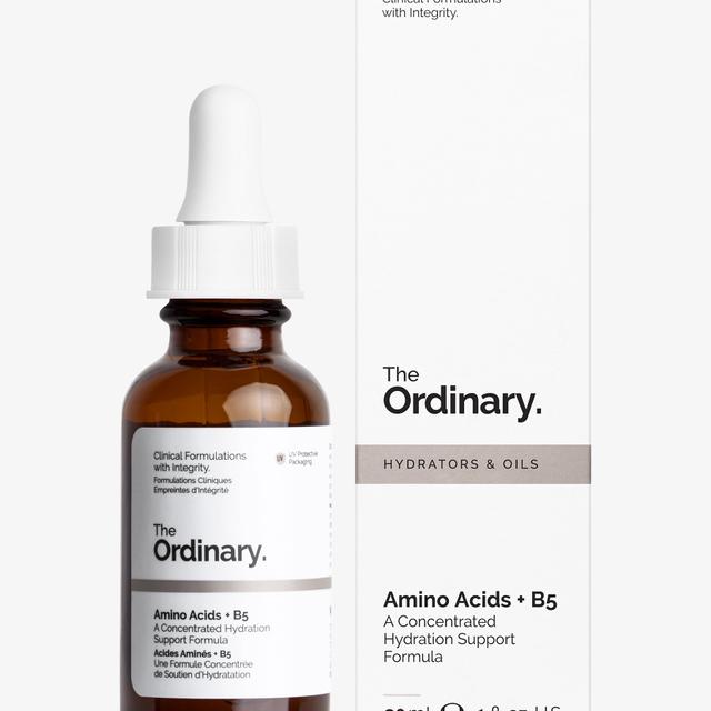 Amino Acids + B5 is an ultra-fine serum that works with the skin to support the natural hydration barrier. This water-based formula contains a concentrated solution of amino acids and amino acid derivatives that mimic the skin's natural hydration factors. It keeps the outer layer of the skin protected and hydrated without leaving it greasy, and includes pro-vitamin B5 to ensure hydration on the surface and below.