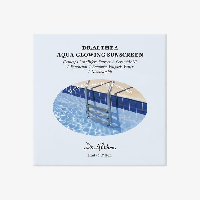 Aqua glowing sunscreen is a lightweight and non-sticky sunscreen that hydrates and protects the skin from sun exposure. Its creamy texture absorbs easily, providing deep hydration, making it ideal for dry and unbalanced skin that requires barrier repair.