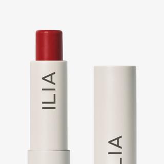 The Balmy Tint lip balm features active, moisturizing ingredients and a subtle, buildable color. Its creamy formula instantly hydrates the lips and adds a touch of color that intensifies with each application. With ingredients such as sea prickly pear, rosehip seed oil, and shea butter, it makes lips smoother and plumper. This balm is a reinterpretation of ILIA's classic lip balm created 10 years ago. Each Balmy Tint is handcrafted to ensure quality and is available in eight easy-to-apply shades. Elegantly packaged in the signature ILIA case.