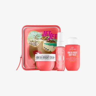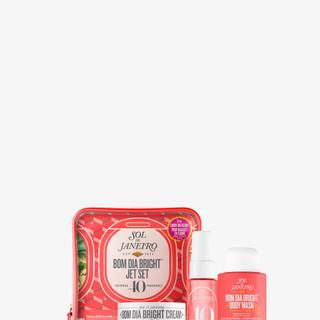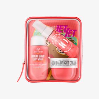 The BOM DIA JET SET is a travel set for body care that features best-selling products for your beauty routine. It includes a brightening shower gel, a body cream, and a fragrance mist.