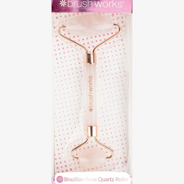 The Brushworks Brazilian Rose Quartz Stone Roller offers countless health benefits. It stimulates blood circulation and massages the skin for a youthful glow. The roller can be used over your favorite serums to enhance absorption. Perfect for cooling, smoothing, and reducing the appearance of pores and puffiness. The product is PETA certified cruelty-free and vegan.