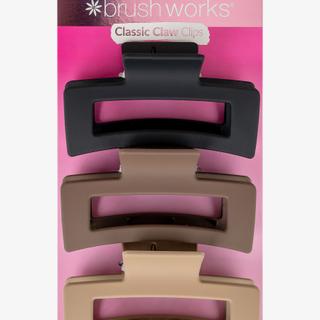 The Brushworks Classic Claw Clips are an essential accessory for elegant and casual hairstyles, perfect for keeping hair in place. Designed for versatility, they suit various hair types. The sturdy teeth ensure a secure grip, keeping the hairstyle in place all day long. These clips are a must-have for anyone seeking impeccable styling. The product is PETA certified: cruelty-free and vegan.