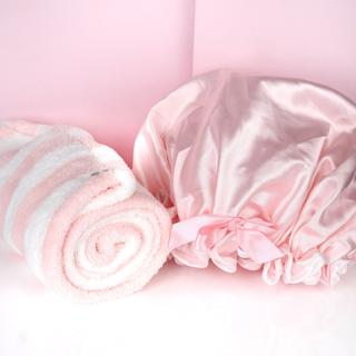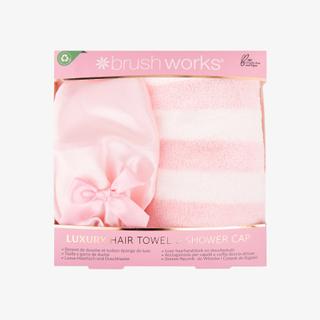 With the super soft and luxurious hair towel and shower duo, you can pamper and indulge your hair. The hair towel absorbs moisture to reduce drying time and heat damage. The shower cap is great for keeping your hair dry during showers and can also be used to retain moisture from your mask or favorite hair treatment. The product is PETA certified cruelty-free and vegan. The set includes a luxurious hair towel and a shower cap.
