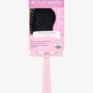 The Brushworks Smooth & Shine brush is an ideal tool for achieving smooth and silky hair. With its stiff nylon bristles, it easily detangles hair, reduces frizz, and adds shine. Perfect for elegant hairstyles, for brushing curls, or for straightening hair. Suitable for most hair types, this brush is also made from 64% recycled materials and is PETA certified, cruelty-free, and vegan.