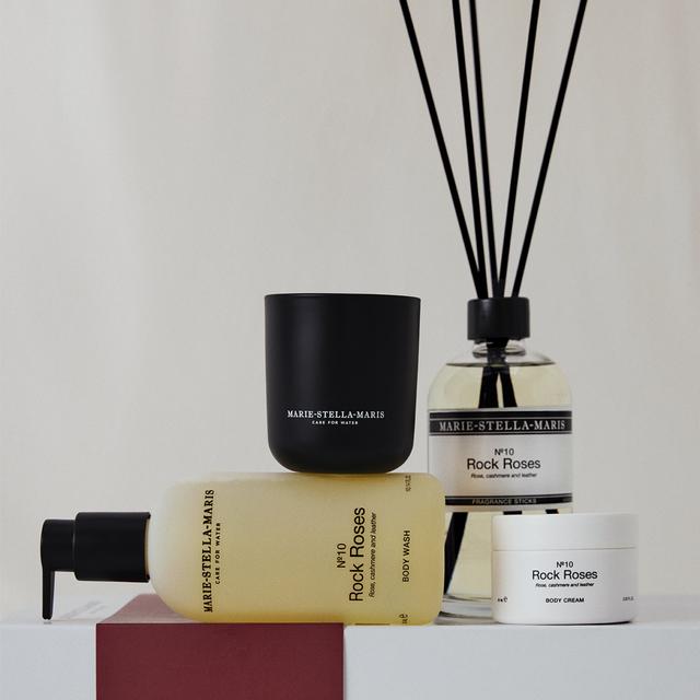 Indulge in a luxurious sensory experience with the Rock Roses Gift Set. This exclusive collection for body and home features seductive notes of rose, cashmere, and leather. The set includes a shower gel, body cream, scented candle, and fragrance sticks to pamper your skin and elevate your home's ambiance.