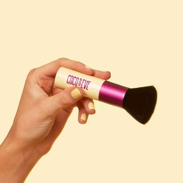 Use the Coco & Eve Kabuki brush to evenly apply the tanning mousse. Dispense a small amount of product onto the brush and apply in circular motions. Gradually add more product until the desired area is adequately covered. After use, rinse the brush until the water runs clear and allow to dry with the bristles facing down.