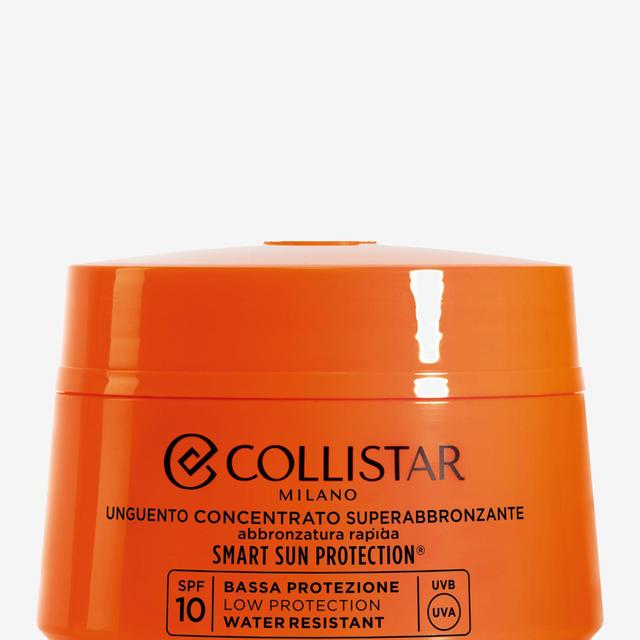 Concentrated tanning ointment SPF 10 provides a quick and intense tan while protecting the skin from solar rays. Its rich formula with vegetable oils, jojoba wax, and vitamin E hydrates the skin, maintaining elasticity and combating signs of aging. It spreads easily, forming a water-resistant film that protects the skin during and after contact with water.