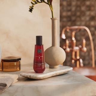 This 90% natural origin dry oil is enriched with Indian rose, nourishing sweet almond oil, anti-inflammatory moringa oil, and moisturizing coconut oil, taking care of the skin according to Ayurvedic tradition. It has a light texture that is easily absorbed by the skin, making it perfect for use on body and hair.