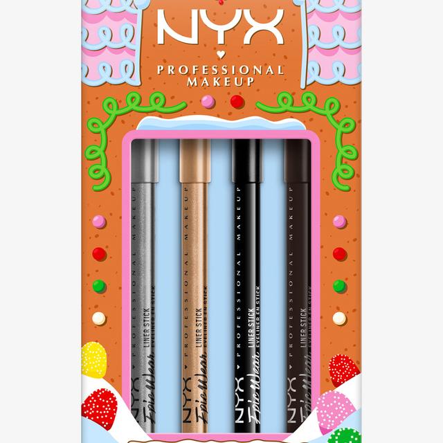 Unleash your creativity with the NYX Professional Makeup Epic Wear Liner Stick Kit. This set features four long-lasting eyeliners in stunning matte and metallic finishes, perfect for crafting bold, graphic, and festive eye looks. Presented in special festive packaging, it's the perfect gift for any makeup lover.