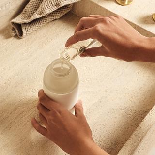 This concentrated foaming shower gel transforms your shower into a luxurious experience. Simply fill the glass bottle with water and concentrate to achieve a gentle cleansing formula. With fragrant notes of green tea, citrus, and sage, each shower becomes a moment of relaxation. Natural biolipids ensure gentle cleansing and soft skin, while aloe vera soothes and hydrates. 100% vegan, the sustainable glass design bottle allows for unlimited refills. This set includes a refillable glass bottle and the concentrate.