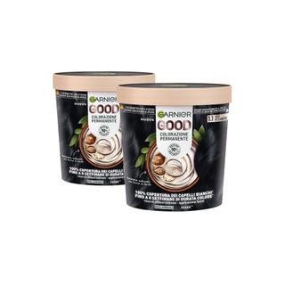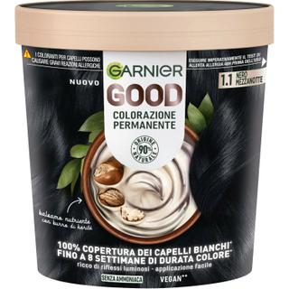 Discover Garnier GOOD, a permanent hair dye with 90% natural ingredients and no ammonia. Its non-drip, mask-like texture ensures easy application and 100% grey coverage. Enjoy a pleasant fragrance and vibrant, healthy-looking color that lasts up to 8 weeks.