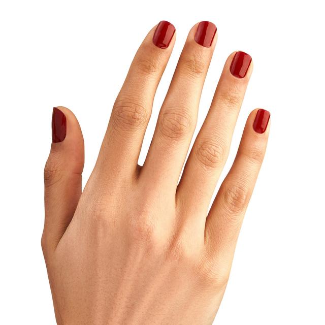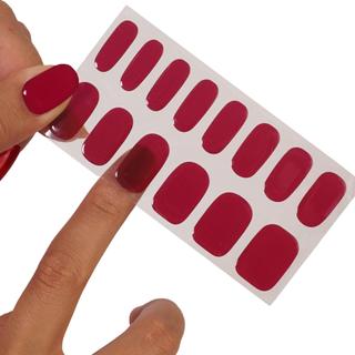 With these easy-to-apply gel nail strips, you can instantly achieve a flawless manicure! These semi-cured strips fit any nail. Cure them under a LED light for a quick and clean application. The beautiful glossy result lasts up to 14 days and is extremely durable and scratch-resistant. Each set contains 28 gel strips in 12 sizes, 2 prep pads, 1 nail file, 1 wooden stick, and a Demi-LED lamp. Everything you need for a perfect application. For 2 complete manicures. This shade is a deep, rich, and vibrant red.