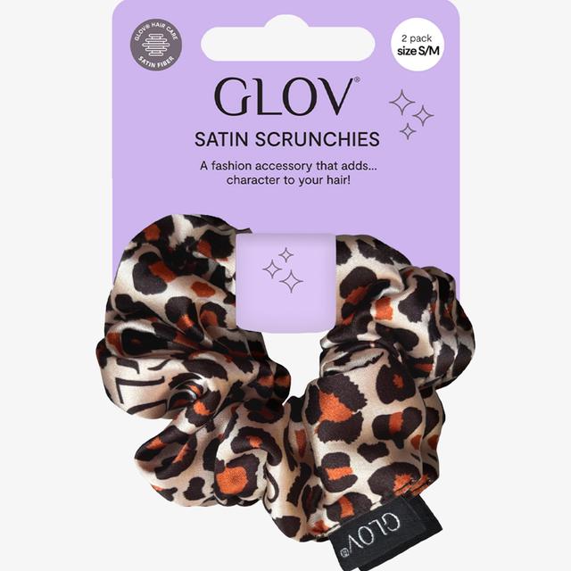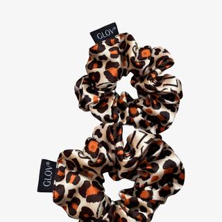 A pack of two leopard print scrunchies made from soft fabric for a gentle hold that won't snag. Designed for a quick hairstyle, they add a bold and fashionable touch to any look while helping to reduce damage. The improved design offers a secure grip that stays in place, even during workouts and active days, suitable for all hair types. Each scrunchie provides reliable hold without pulling, made with enhanced materials for lasting elasticity and durability, ideal for everyday use.