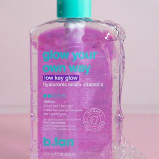 A transparent, transfer-resistant self-tanning gel with a light golden shimmer for a sun-kissed complexion. The formula, containing pro-vitamin B5 and hyaluronic acid, supports skincare and contributes to a smooth, radiant appearance. Ideal for a natural glow without sun exposure.