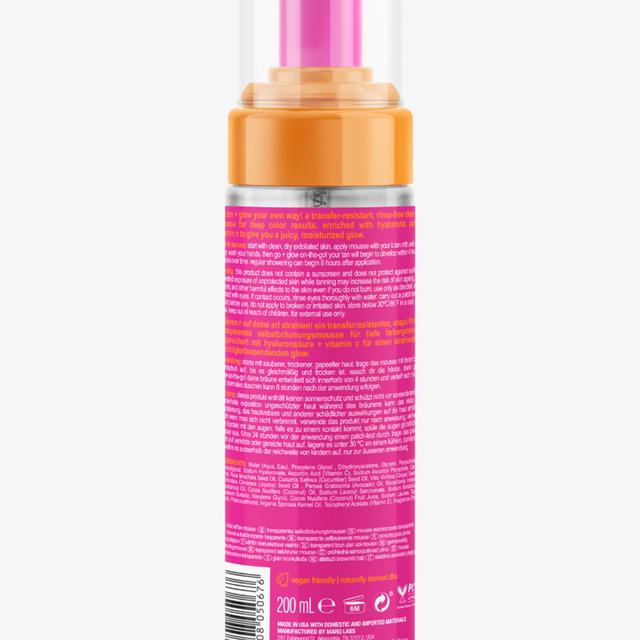 A transparent self-tanning mousse, to be rinsed, with an intense golden shimmer. The formula with hyaluronic acid and vitamin C supports skincare and promotes a smooth and radiant appearance.