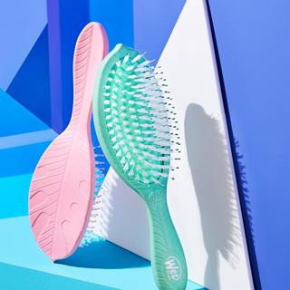 The exclusive and super soft IntelliFlex® bristles effortlessly detangle, minimize pain, and prevent split ends and breakage. The cushion that holds the bristles contains tea tree oil. The body of the brush is made from plant-based plastic.
