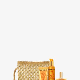 Discover this golden set that brings together three summer essentials for protected and radiant-looking skin. It includes high protection SPF30 fluids for the face and body. The skincare products are formulated and produced in France. Made with sustainable materials.