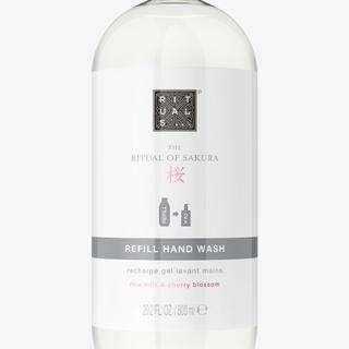 Extend the life of your favorite hand soap with this 600ml eco-chic refill for The Ritual of Sakura dispenser. Enriched with nourishing rice milk and the delicate scent of cherry blossom, this pH-neutral formula gently cleanses hands, leaving them soft and beautifully fragranced. One refill is enough to fill your luxury soap bottle twice.