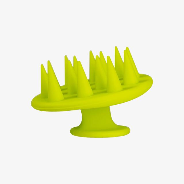 The "Head Bliss" massaging brush promotes blood circulation, keeping the scalp and hair roots alive and healthy. It gently exfoliates the scalp and evenly distributes shampoo throughout the hair. The silicone tips are perfect for gently massaging the scalp.