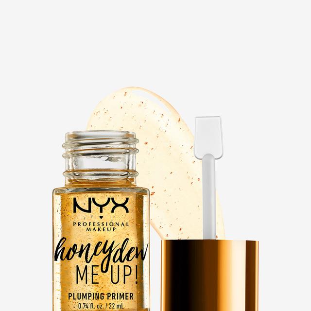 The Honey Dew Me Up Primer by NYX Professional Makeup has a vegan formula that refines the complexion and illuminates the face with its reflective golden particles.