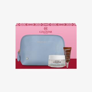 The exclusive beauty bags from the Collistar gift sets carry the The Bridge brand, the leading Italian manufacturer of leather goods. These pouches contain the most popular Collistar products, featuring a sleek and essential design. The eye gel is moisturizing with a lifting effect thanks to hyaluronic acid and ceramides, ensuring intense hydration. An effective eye treatment with peptides and ginseng extract protects the delicate eye contour area. Suitable for all skin types.