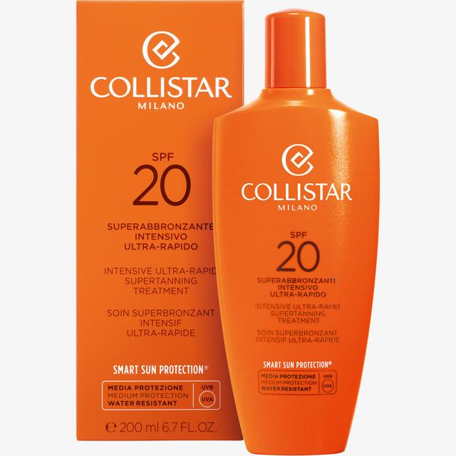 The Intensive Ultra-Rapid Supertanning Treatment SPF 20 is a tanning activator that stimulates and accelerates melanin production. It allows for a tan to be achieved in a short time, even in less intense sunlight. Suitable for both body and face, it absorbs quickly and provides softness to the skin even after prolonged sun exposure. The product does not stain.