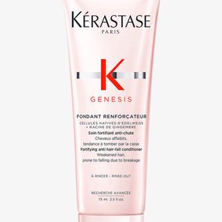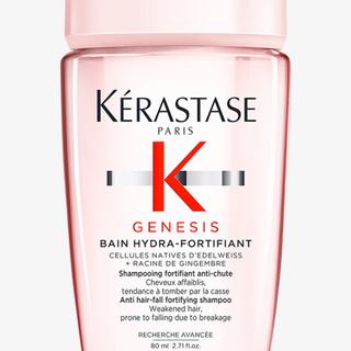 Trial set from Kérastase designed for weakened hair, consisting of a strengthening shampoo, a fortifying conditioner, and moisturizing thermal protection. Ideal for revitalizing and protecting hair from external agents.