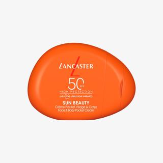 Lancaster Sun Beauty Face & Body Pocket Cream SPF50 is designed for on-the-go use, providing broad sun protection for outdoor activities. It features a lightweight, non-greasy texture with a delicate sun fragrance and is suitable for all skin types. The water and sweat-resistant formula not only helps to keep the skin soft, elastic, and hydrated but also protects against dryness. Powered by Full Light technology, it offers protection from UVB, UVA, visible light including blue light, and infrared rays. Additionally, it supports the skin's natural tanning process and aids in repair after sun exposure. Lancaster is committed to developing sustainable products, with packaging made of at least 44% recycled plastic.