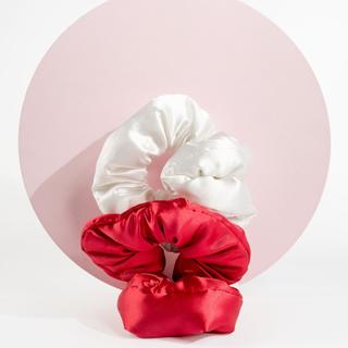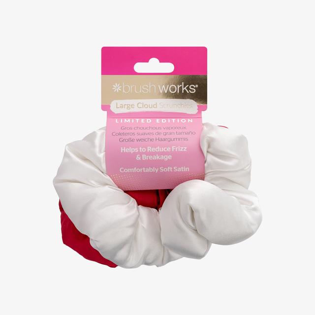 The large and soft scrunchies from Brushworks keep hair healthy and in its best condition. The satin material reduces friction and tension, protects hair from breakage, and promotes health. The padded core of the elastic helps distribute pressure on the hair more evenly, reducing the risk of breakage and discomfort. These ultra-soft and lightweight elastics are made from a very comfortable stretch fabric. The set contains 2 scrunchies. The product is PETA certified, cruelty-free, and vegan.