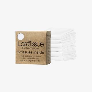 Keep your LastTissue case stocked with this refill pack of 6 soft, organic cotton tissues. Perfect for use while your original set is in the wash, ensuring you're never without a reusable tissue.