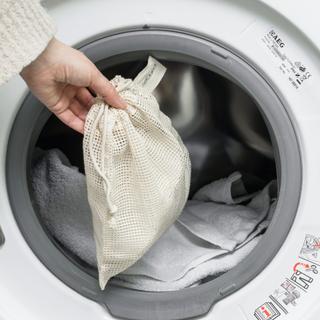 This laundry bag is made of certified organic cotton. The mesh fabric is perfect for washing garments and ensuring they don't mix with the rest of the laundry. A drawstring keeps the bag closed during washing.