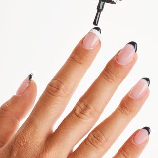 The Le Frenchie Noir gel polish duo allows you to achieve a trendy classic French manicure. It includes a bottle of liquorice gel polish, our richest and most opaque black, and a bottle of meringue gel polish, a beautiful light pink perfect as a base for the French manicure. It also comes with 120 stencils to create perfect tips.