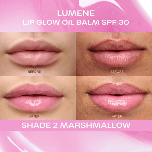 LUMENE Lip Glow Oil Balm SPF30 is a juicy and ultra-shiny oil balm that provides your lips with hydration, transparent color, and broad spectrum SPF 30, all wrapped in a delicious fragrance. Formulated with nourishing Nordic cranberry oil and Nordic oat ceramides that protect the hydration barrier. It glides on easily, is a treat for the lips, and leaves them shiny, cared for, and protected.