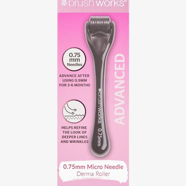 Discover the Brushworks 0.75mm Micro Needle Derma Roller, designed for experienced users, providing deep treatments for scars, skin issues, and scalp health. With 540 stainless steel micro-needles, it stimulates collagen production and enhances serum absorption. It is cruelty-free and vegan-friendly.