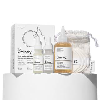 A trio of heroic mini products designed to illuminate and hydrate uneven skin tones. This iconic set includes three popular mini formulas, perfect for travel, along with reusable cotton pads to support product application. These products work together to exfoliate, balance, and hydrate the skin, contributing to a smoother, more radiant complexion.