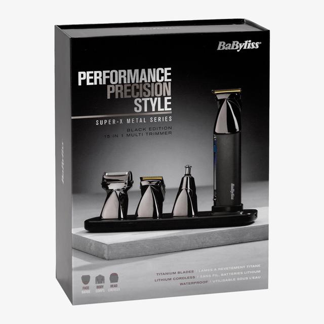 The Super-X Metal 15-in-1 Multitrimmer is designed for cutting, shaping, and creating a personalized style. This versatile product is ideal for professional use and offers excellent craftsmanship with a robust metal grip.