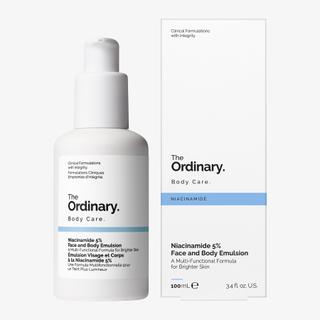 A light emulsion for face and body that helps even skin tone and reduce dark spots. This multifunctional formula is tested on all skin types and improves skin appearance on the face, neck, and arms, promoting a more uniform skin tone. It contains a 5% concentration of Niacinamide for gentle skin brightening while improving hydration and skin softness.
