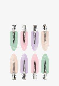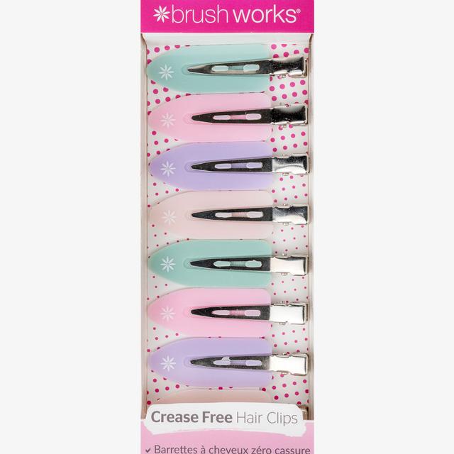 The No Crease hair clips enhance the beauty routine. Designed to keep hair away from the face during skincare, makeup, and styling, they are lightweight and comfortable, suitable for all hair types and textures. They keep hair clean without damaging it or leaving marks. This package contains 8 pastel-colored clips and is PETA certified: not tested on animals and vegan.