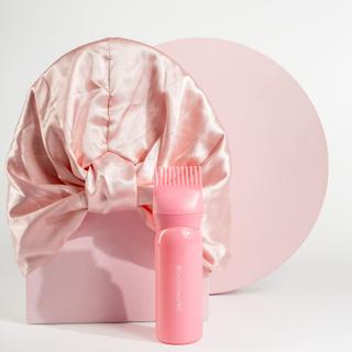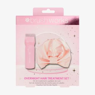 A pampering program for hair: Brushworks Overnight Hair Treatment Set. This exclusive set transforms hair washing into a spa-like ritual, nourishing and hydrating hair from roots to tips. The hair oil applicator ensures precise application, while the high-quality Satin Hair Turban reduces frizz and promotes healthier, smoother strands. The product is PETA certified cruelty-free and vegan.