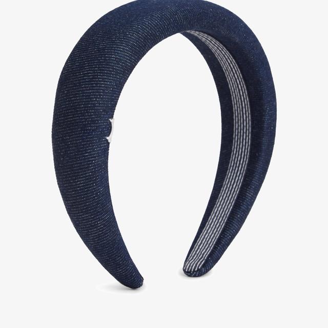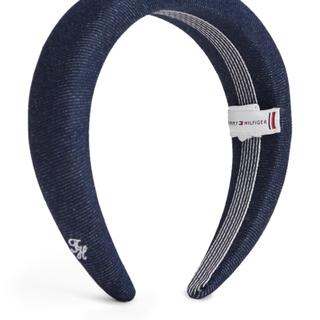 Made of rigid denim, this padded headband features a distinct retro style with a nautical touch. It has a padded design and an embroidered Tommy Hilfiger logo on the side. The circumference is 56 cm and is made of 100% cotton.
