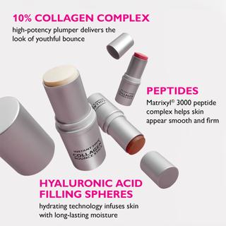 Infused with a 10% Collagen Complex and Hyaluronic Acid, this treatment stick balm enhances skin elasticity and provides a radiant, buildable glow. It blends seamlessly with any skin tone for a fresh, youthful look. Apply directly to clean skin or over foundation for an instant boost of color and hydration.