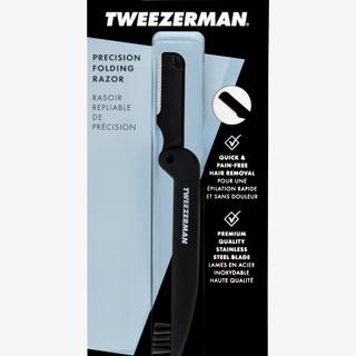 The TWEEZERMAN precision folding razor removes fine hair and fuzz from the face for smooth, elastic skin. It is suitable for shaping eyebrows and beard contours. The stainless steel precision blade, gentle on the skin, allows for pain-free and redness-free hair removal. Easy to clean and convenient for travel.