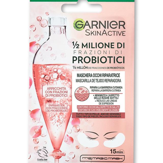 Probiotic-enriched fabric eye mask that helps repair and strengthen the skin barrier around the eyes, resulting in a healthy and radiant eye contour. Retains moisture and minimizes fine lines. Suitable for all skin types, even sensitive. The mask is biodegradable in home composting.