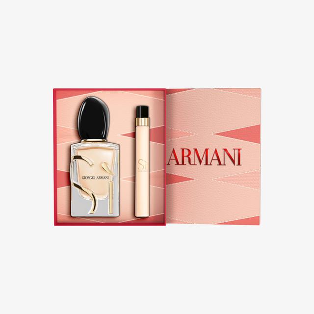 Armani Beauty presents a gift set inspired by the Couture Game, which includes Sì Eau de Parfum in a 50 ml size and a travel size of 10 ml. The fragrance combines notes of blackcurrant with a floral accord and delicate musky notes, creating an elegant and balanced perfume. The glass bottle with refined craftsmanship features the Sì logo embossed in gold, echoing the iconic identity of the fragrance. This set is designed to be completely plastic-free and built to last over time.