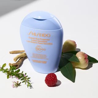 The Sensitive Sun Protector Lotion SPF50+ by Shiseido provides advanced sun protection with nourishing ingredients in a lightweight and invisible formula. Designed with WetForce technology and Super-Veil UV 360, it helps defend the skin against UVA and UVB rays, enhancing protection upon contact with water and sweat. Enriched with 85% nourishing ingredients, it maintains hydration for up to 8 hours and is ideal for sensitive skin. Dermatologically and pediatrician tested, it is suitable for children from 6 months and uses eco-friendly packaging.