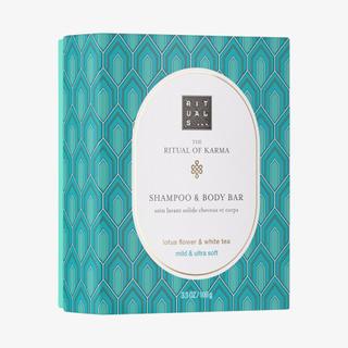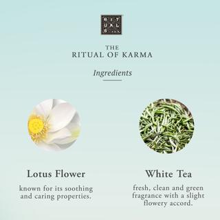 Discover The Ritual of Karma Clean Beauty Bar, a luxurious solid soap for body and hair. The extremely rich and gentle formulation is based on 91% natural origin ingredients. The delicate foam effectively removes impurities without drying out skin and hair. This soap-free Clean Beauty Bar has a light fragrance of lotus flowers and white tea, and contains ingredients that deeply hydrate skin and hair. Squalane provides intense hydration and regenerates the skin's lipid mantle, giving elasticity and softness. It also contains aloe for hydration and soothing effects, along with algae that improve the skin's water balance and reduce water loss.