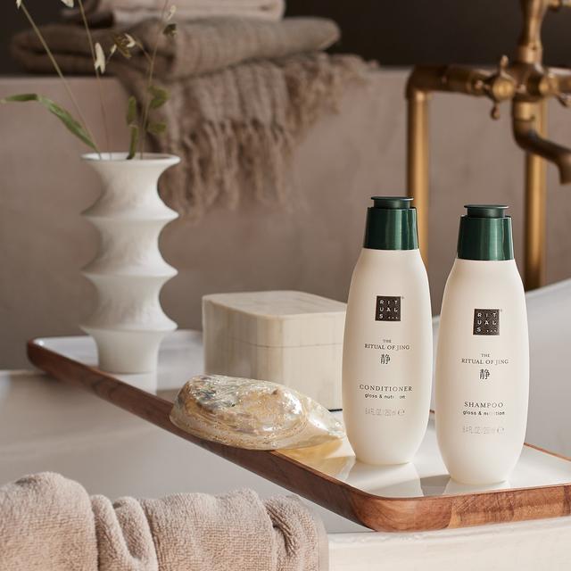 Indulge your hair with The Ritual of Jing shampoo, for healthy, shiny, and soft hair from roots to tips. Enriched with a multi-fruit complex that has a smoothing effect on hair and coconut oil that wraps your strands in a multidimensional shine. Additionally, rice extract and macadamia seed oil help restore the hair's moisture balance and strengthen it. Suitable for daily use and for all hair types. For best results, use it in combination with the conditioner from the same collection. • for shiny hair • 90% of ingredients from natural sources, 10% of lab-created ingredients to ensure the right texture and stability of the product. • gentle on hair and scalp.