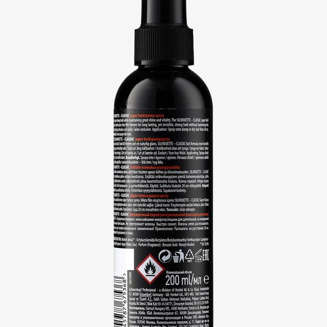 SILHOUETTE – PURE formulation with micro-fine film-formers for a strong and long-lasting hold, yet invisible, without weighing the hair down. Quick drying. No stickiness. Easily brushes away.