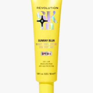 The Sunray Blur Daily Protection Sunscreen SPF 50+ protects, hydrates, and reduces the appearance of pores with a smoothing effect. It is ultra-lightweight, moisturizing, and enriched with niacinamide, vitamin E, and glycerin. The skin appears healthier and more radiant while remaining protected from the sun. This dermatologically tested product is suitable for all skin types. Vegan and not tested on animals. Key ingredients include niacinamide, vitamin E, glycerin, and broad-spectrum UVA+UVB protection with a very high SPF50+.