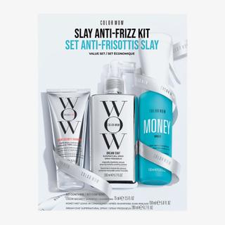 The Slay Anti-Frizz Set is designed to help reduce frizz and leave hair soft, shiny, and healthy. The lightweight formula of the Color Security Shampoo gently cleanses hair, creating a luxurious lather that removes impurities without drying hair. It includes an amino acid complex that helps prevent breakage and dullness. Money Mist is a leave-in spray that provides deep hydration, leaving hair shiny and full of vitality. Finally, the Dream Coat Supernatural Spray is a treatment that smooths hair and regulates moisture, protecting it from frizz for up to 72 hours.